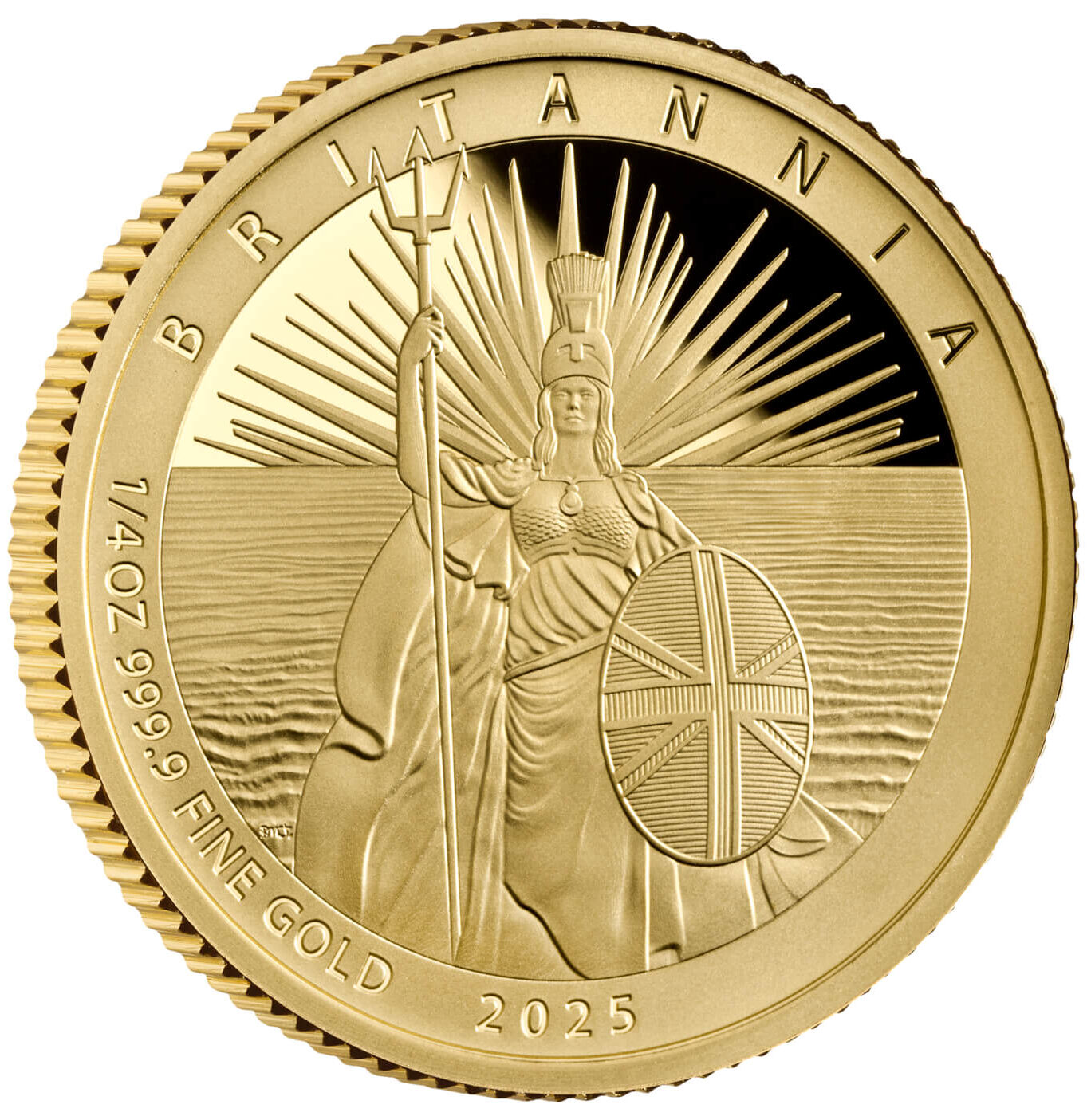 The reverse design by Bradley Morgan Johnson emphasises Britannia’s connection to the sea