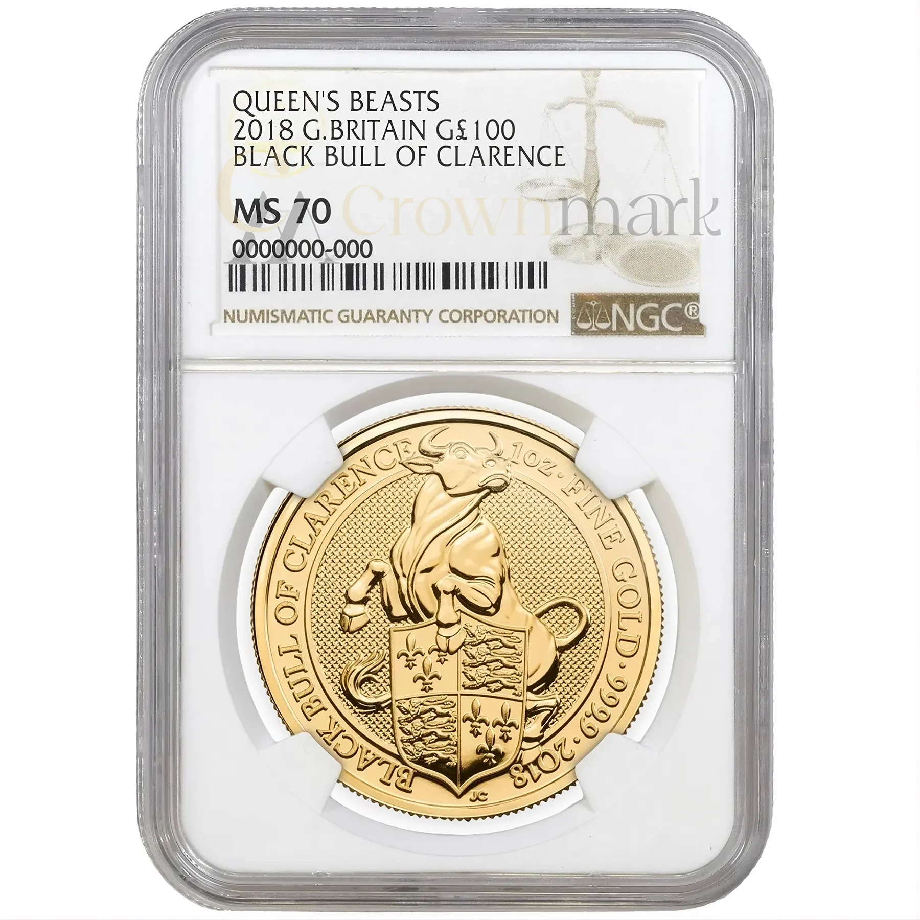 The 2018 Black Bull of Clarence is the fifth release in The Royal Mint’s Queen’s Beasts series — a ten-coin sovereign bullion collection representing the heraldic ancestry of the British monarchy.